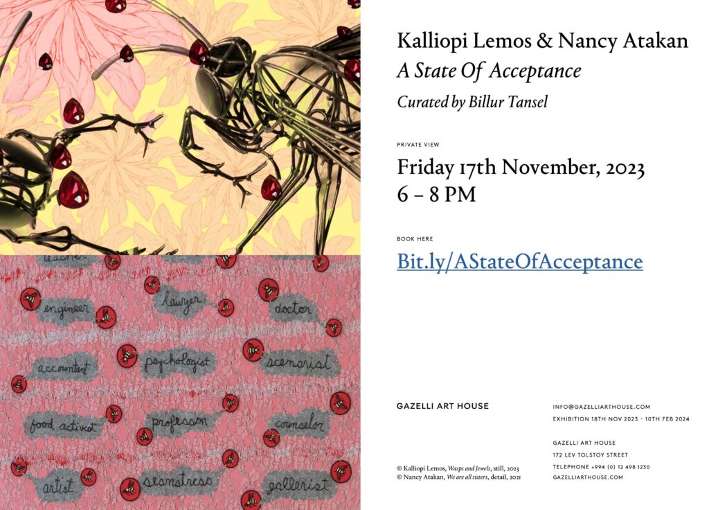 In their own words: “As women and artists, we wanted to give a voice to the unexplored experiences and feelings of women, shared with love, poetry and beauty to create a rich, multidimensional exhibition.” – Nancy Atakan and Kalliopi Lemos